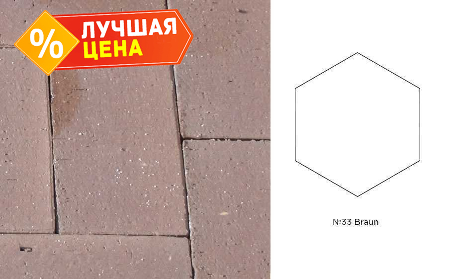 Клинкерная брусчатка Muhr №33 Braun, гексагон 200x20 мм