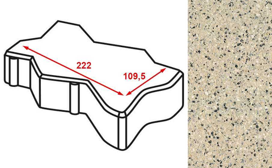 Плитка тротуарная Готика Granite FERRO, зигзаг/волна, Жельтау 222x109,5x60 мм